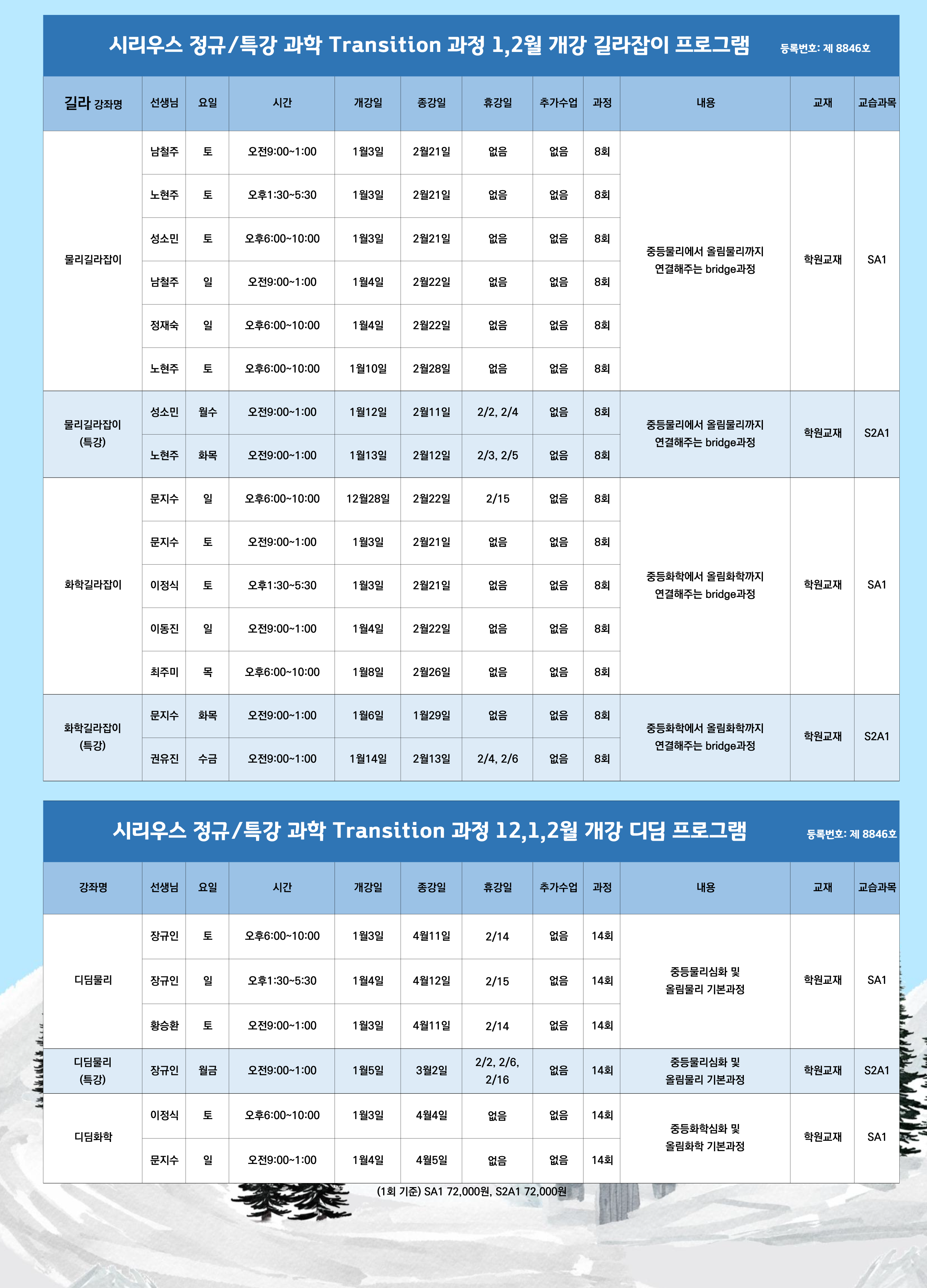 2025년 12월~2026년 2월 개강 길라잡이, 디딤과정 Transition 프로그램