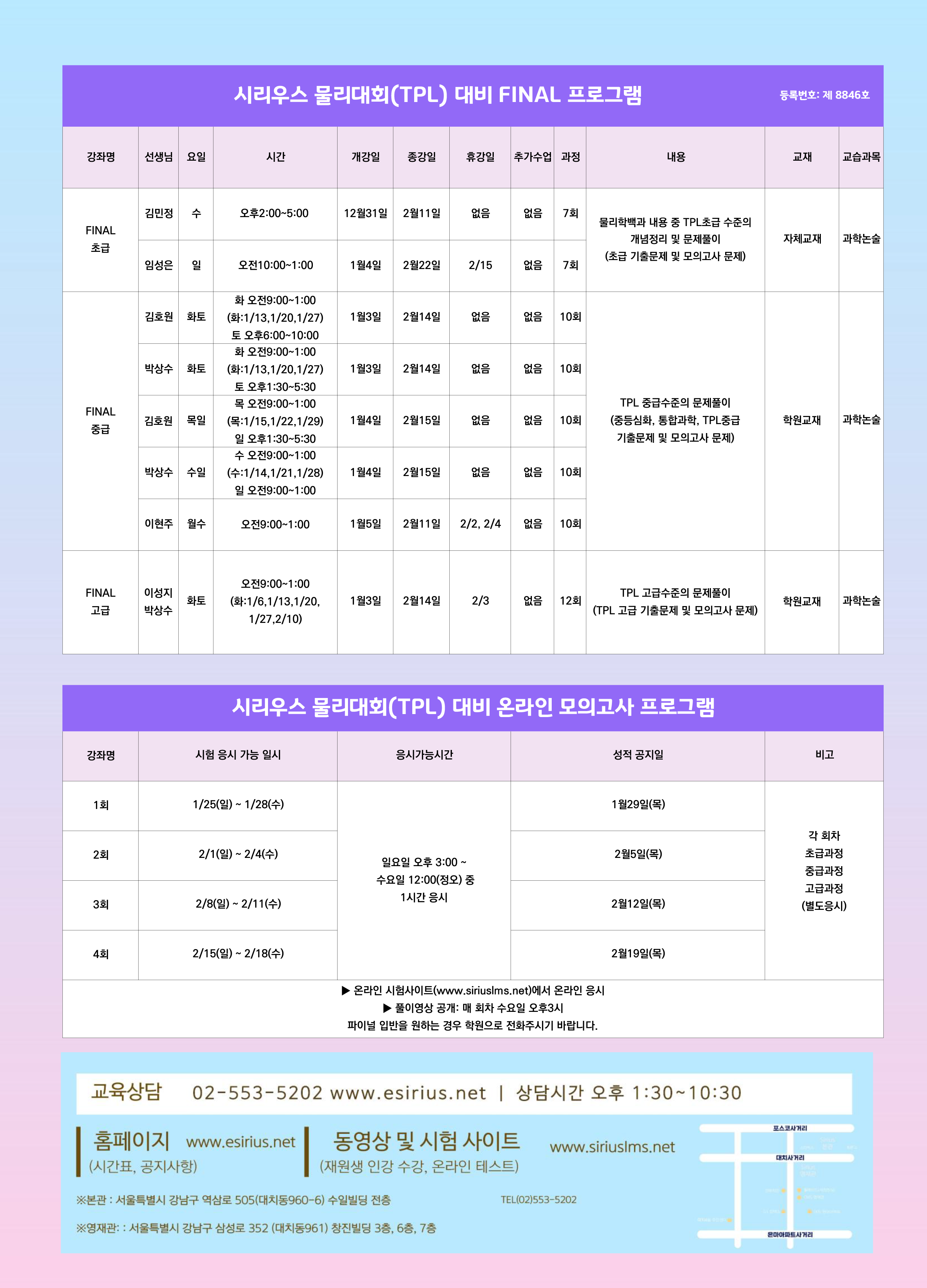 2025년 12월~2026년 2월 개강 물리대회(TPL) FINAL 화학대회(KMChC) FINAL, 생물대회 대비 프로그램