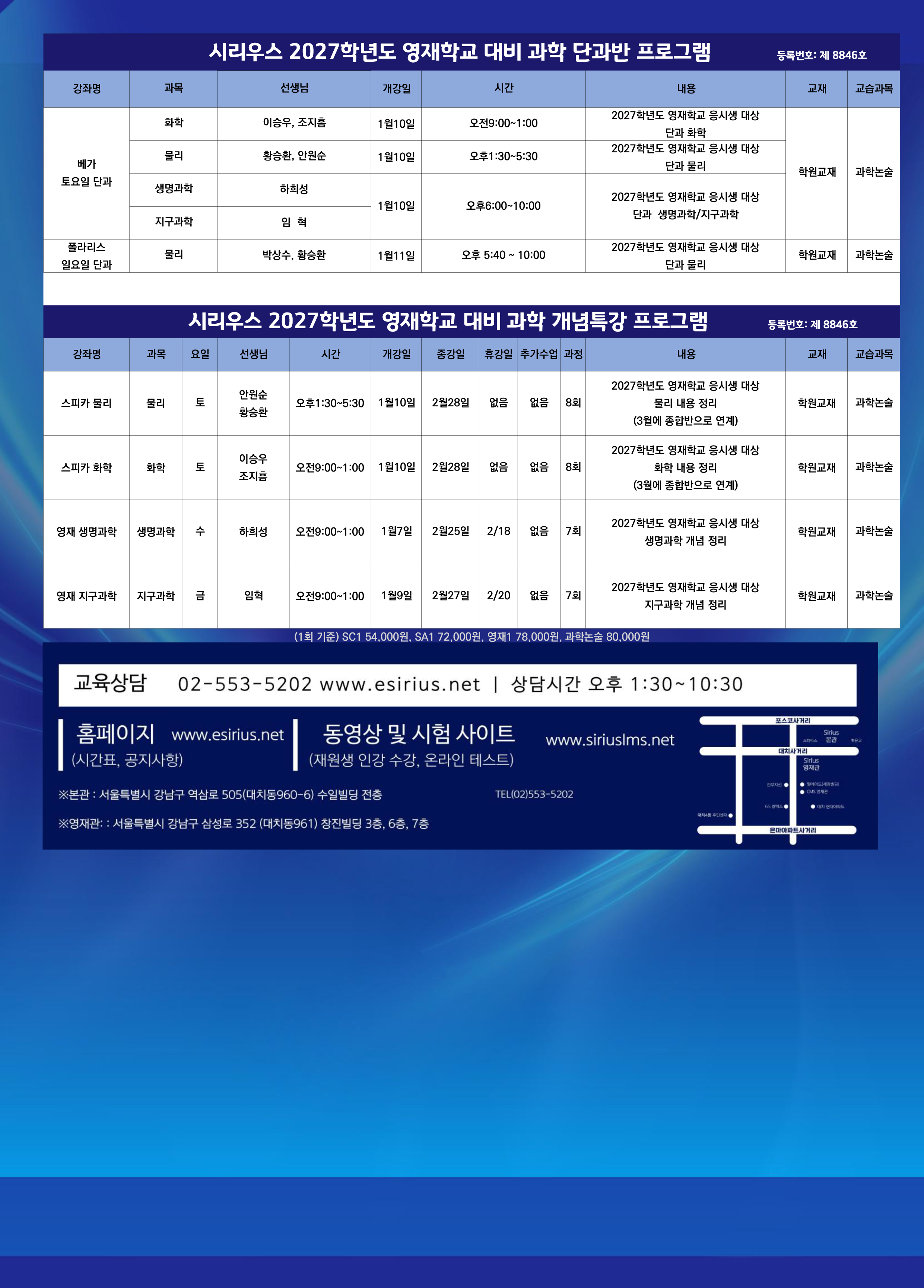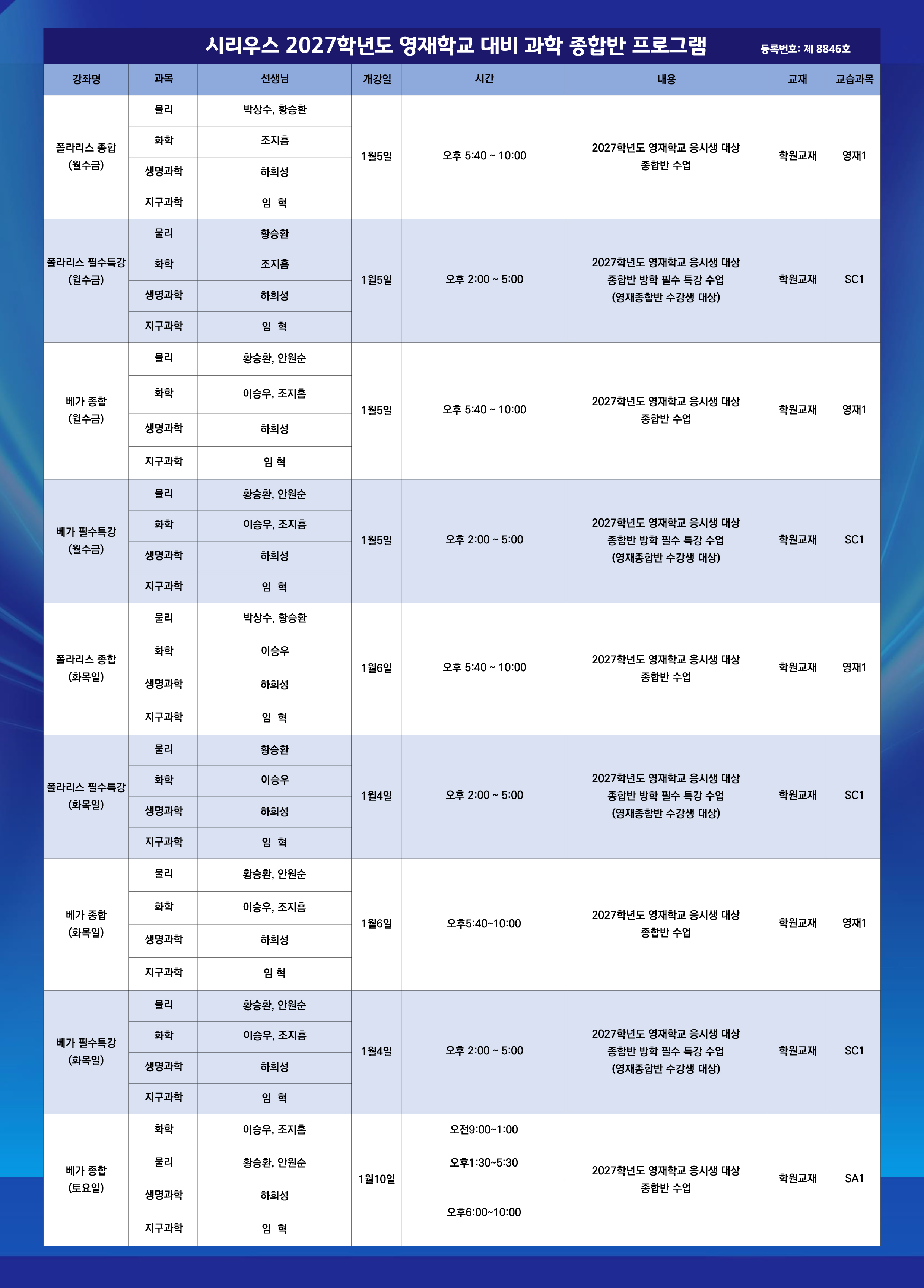 2027학년도 입시(2026년) 과학고 대비 2분기 정규 & 특강 프로그램