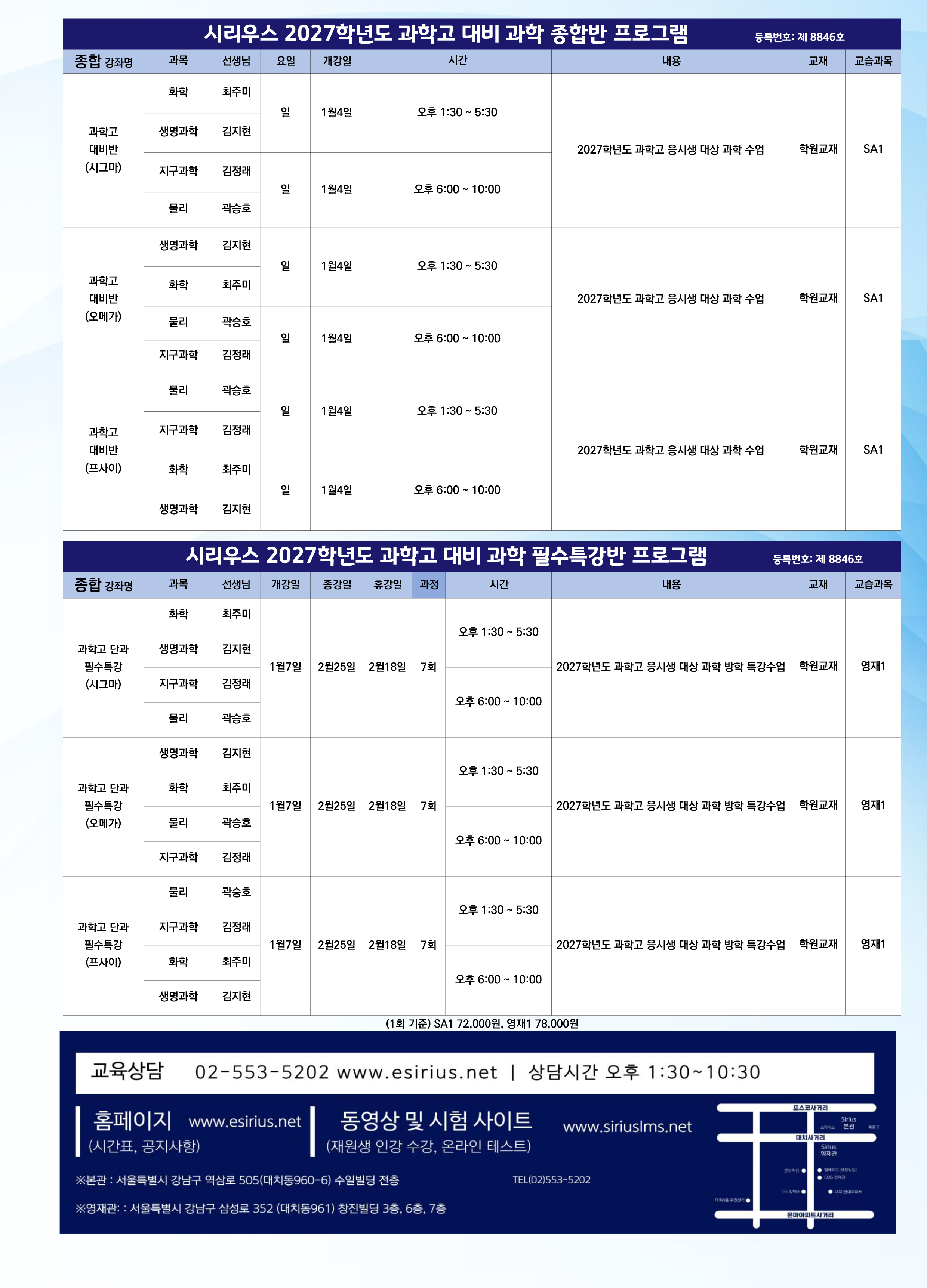 2027학년도 입시(2026년) 과학고 대비 2분기 정규 & 특강 프로그램